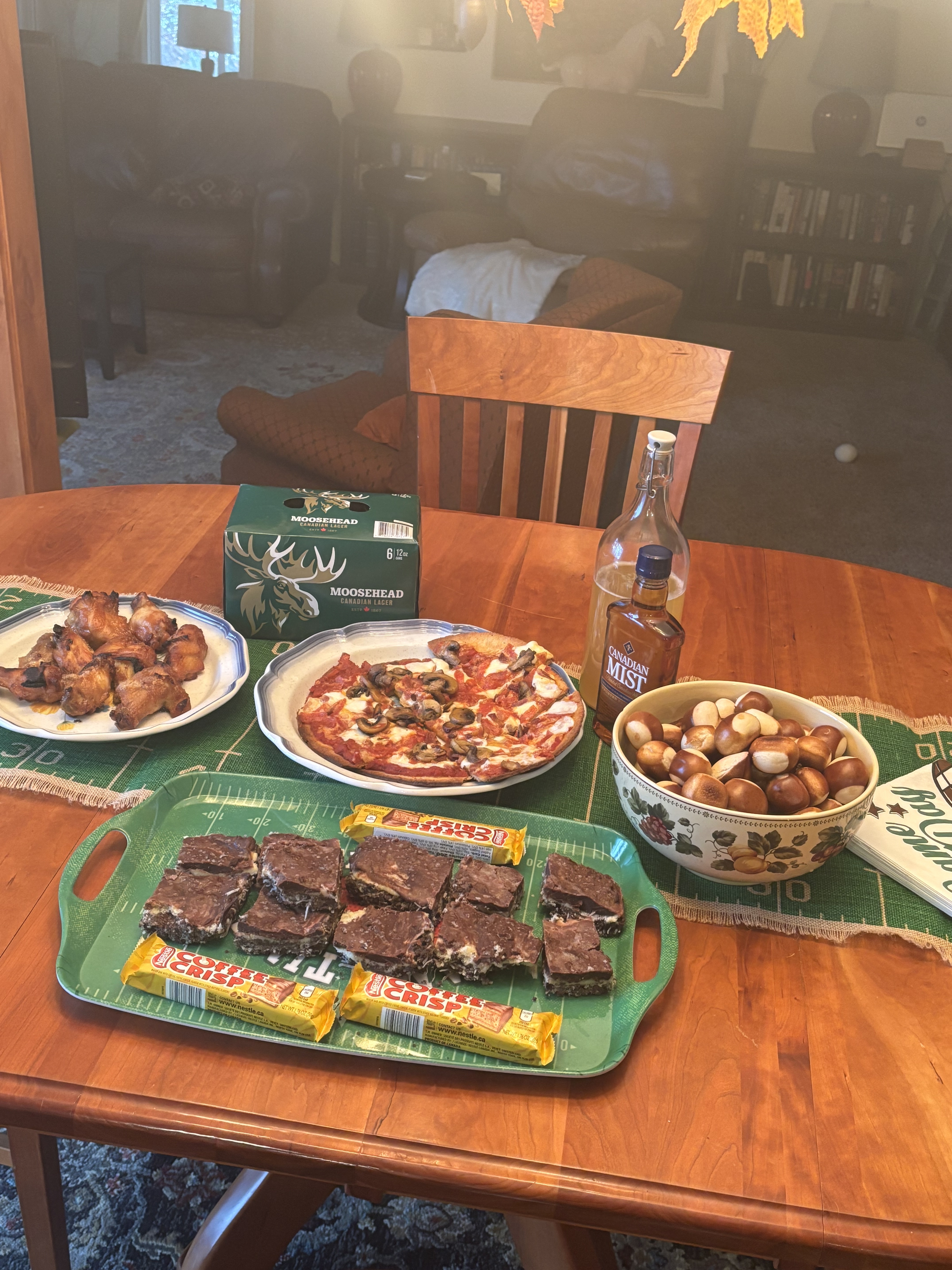 Had pierogies to represent Saskatchewan and had Certon (a French-Canadian spiced ground pork spread to put on Crackers….my dad won’t touch it) to represent Montreal. (Neither pictured)